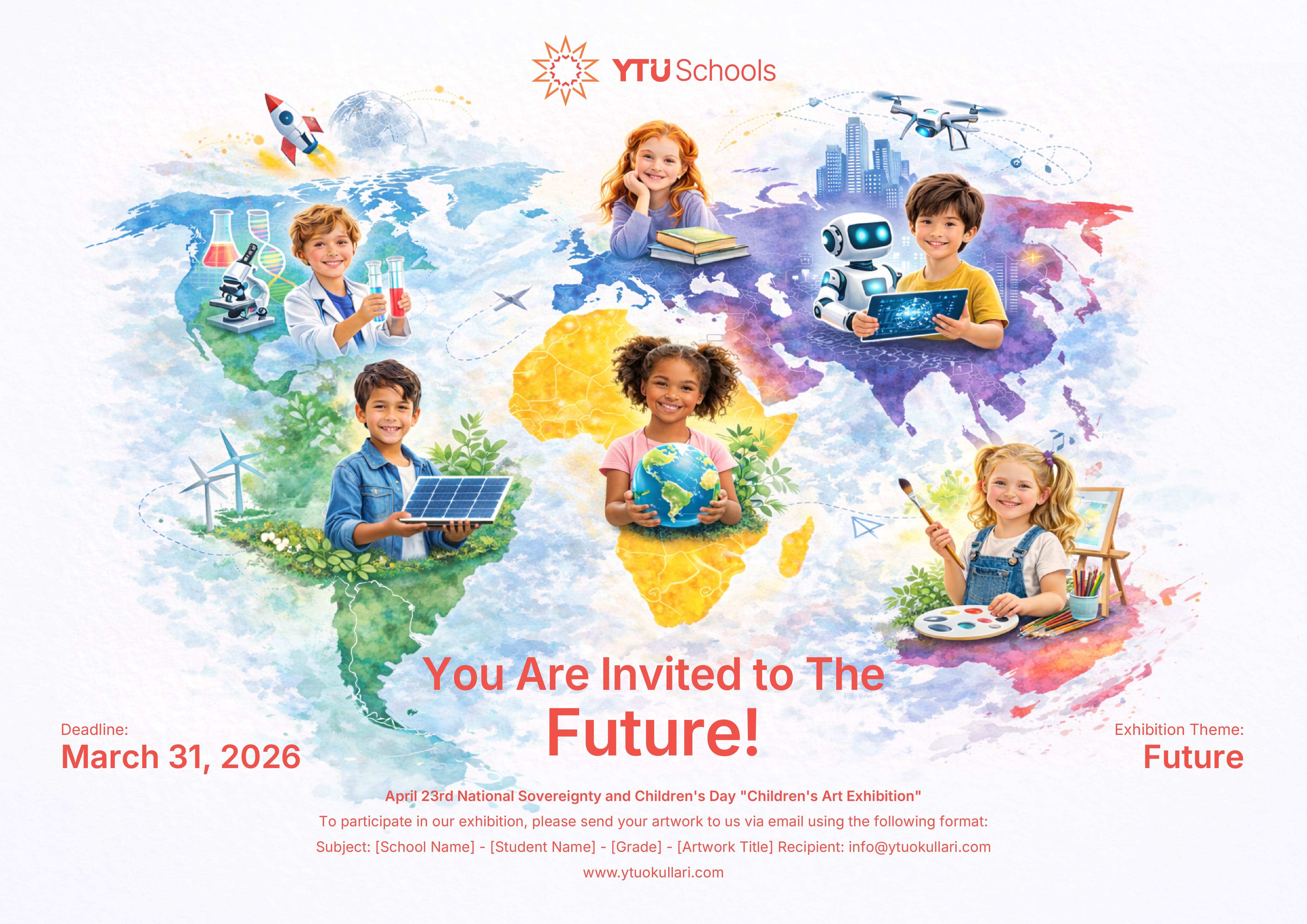 April 23rd National Sovereignty and Children’s Day is one of the most meaningful occasions when our children can freely express their imagination and view the world through their own unique perspectives. As YTÜ Schools, we are celebrating this special day by bringing it together with art under the theme “The Future” and gathering our students’ works in our international digital exhibition.